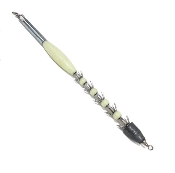 A largge luminous glow-in-the-dark body and four sub-bodies make this jig readily visible underwater.Â